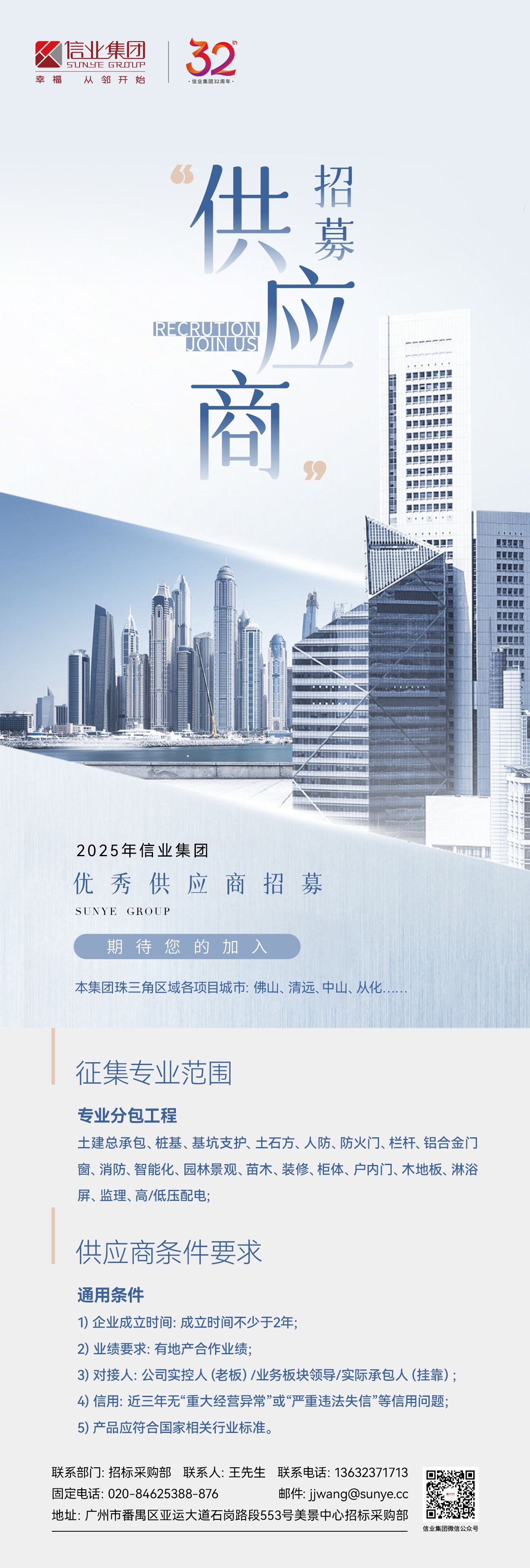 铝合金门窗、栏杆、防火门、园建、消防、低压配电供应商招募