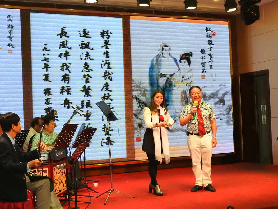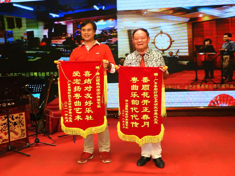 在春茗大会上,还进行了粤曲交流演唱活动。一众粤剧界的专业演员与虾腔研究会的业余唱家纷纷登台演唱,粤韵悠扬,气氛热烈,充分显示了专业团体与民间协会同声同气,团结一心,努力传承发扬优秀传统粤剧粤曲的决心与行动。
